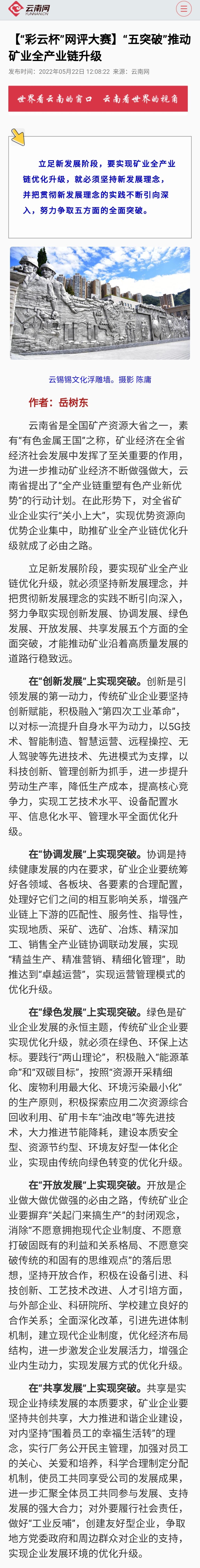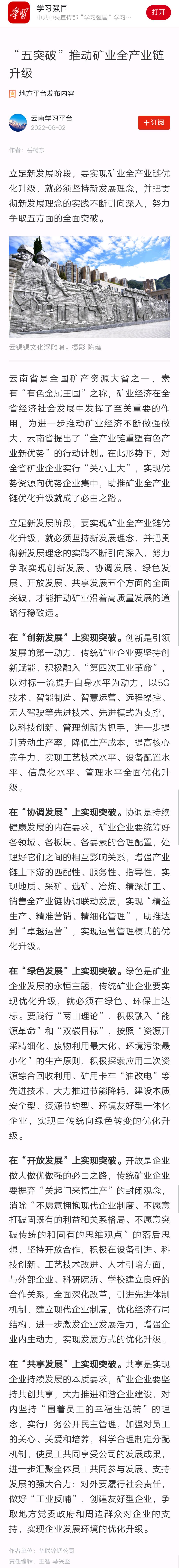 學習強國、云南網:“五突破”推動礦業全產業鏈升級
