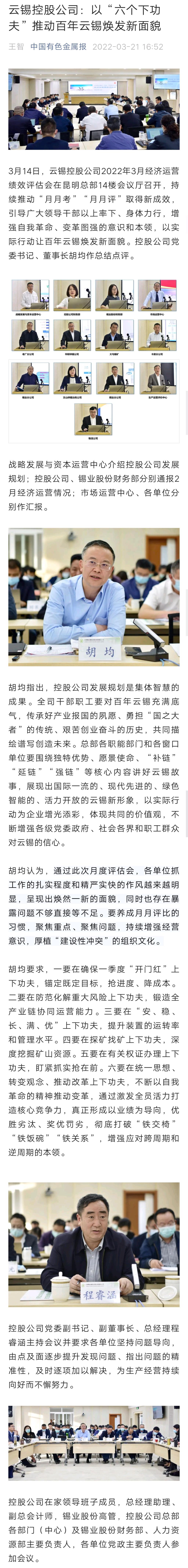 中國有色金屬報:云錫控股公司:以“六個下功夫”推動百年云錫煥發新面貌
