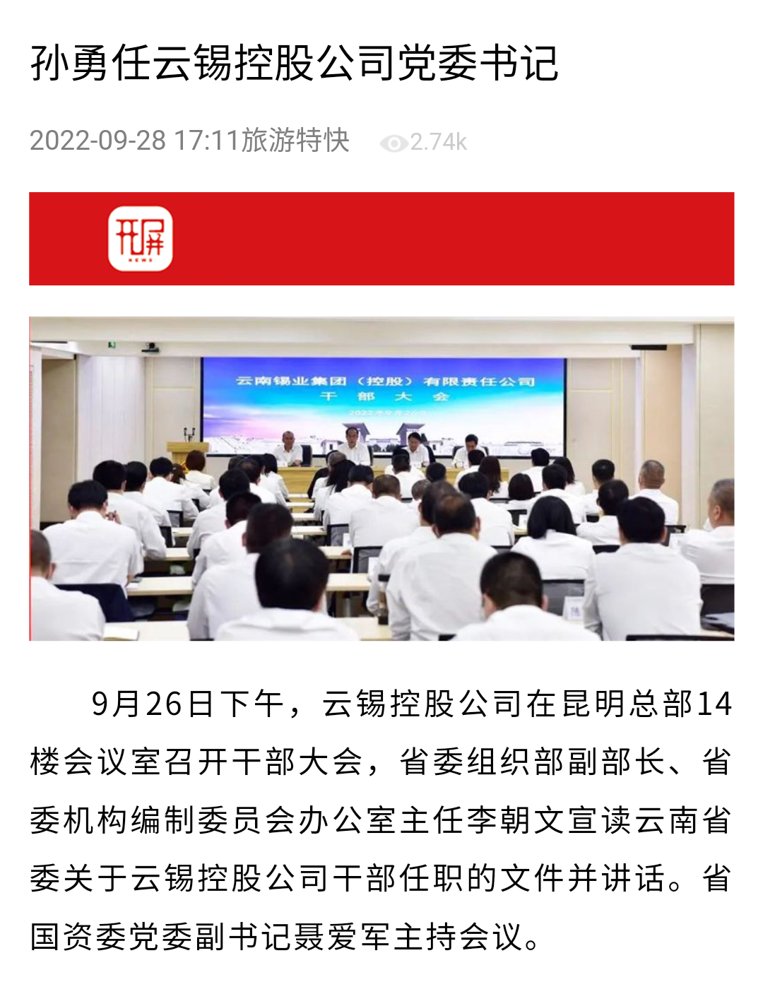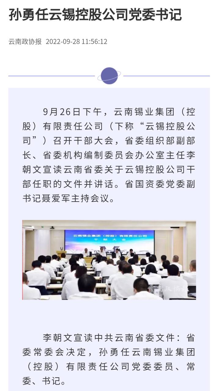 來源:新華財經(jīng)、云南政協(xié)報、中國有色金屬報、文旅頭條、開屏新聞