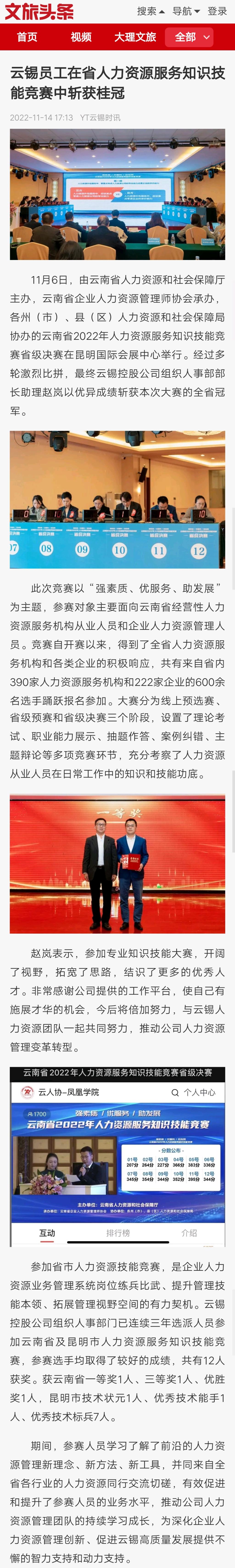 文旅頭條:云錫員工在省人力資源服務(wù)知識技能競賽中斬獲桂冠