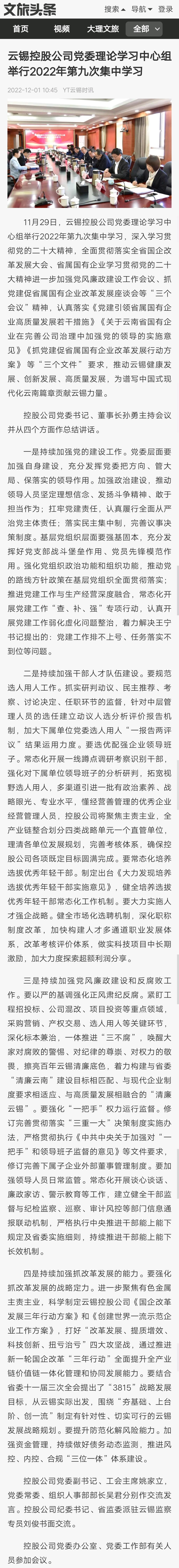 文旅頭條:云錫控股公司黨委理論學(xué)習(xí)中心組舉行2022年第九次集中學(xué)習(xí)