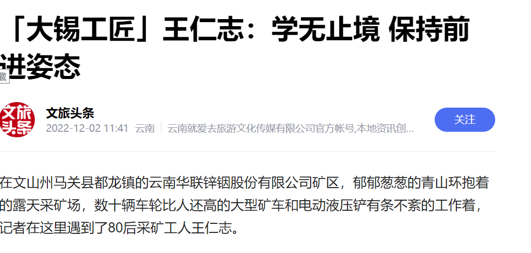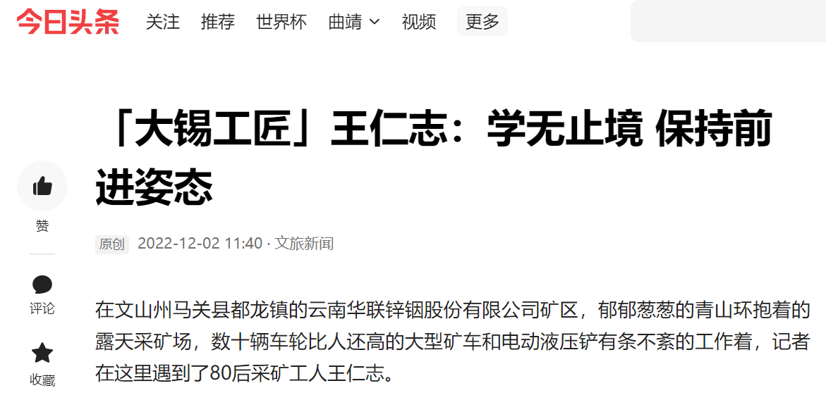 今日頭條、網(wǎng)易、一點(diǎn)資訊、百度、文旅頭條:【大錫工匠】王仁志:學(xué)無止境 保持前進(jìn)姿態(tài)