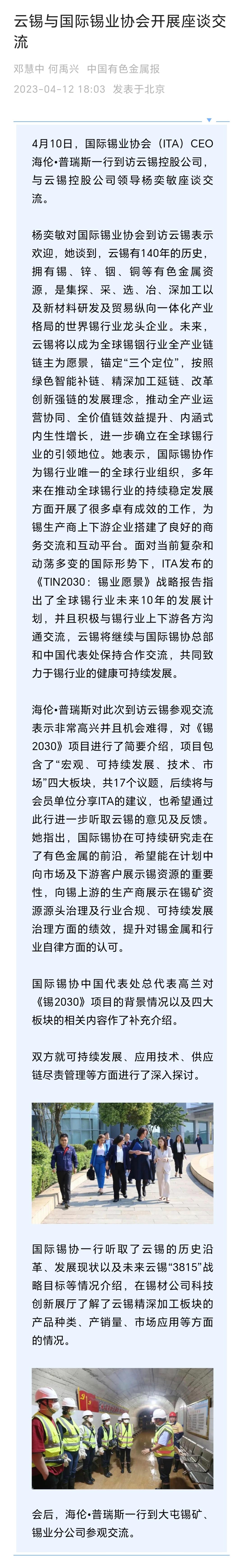 云南政協報、中國有色金屬報:云錫與國際錫業協會開展座談交流