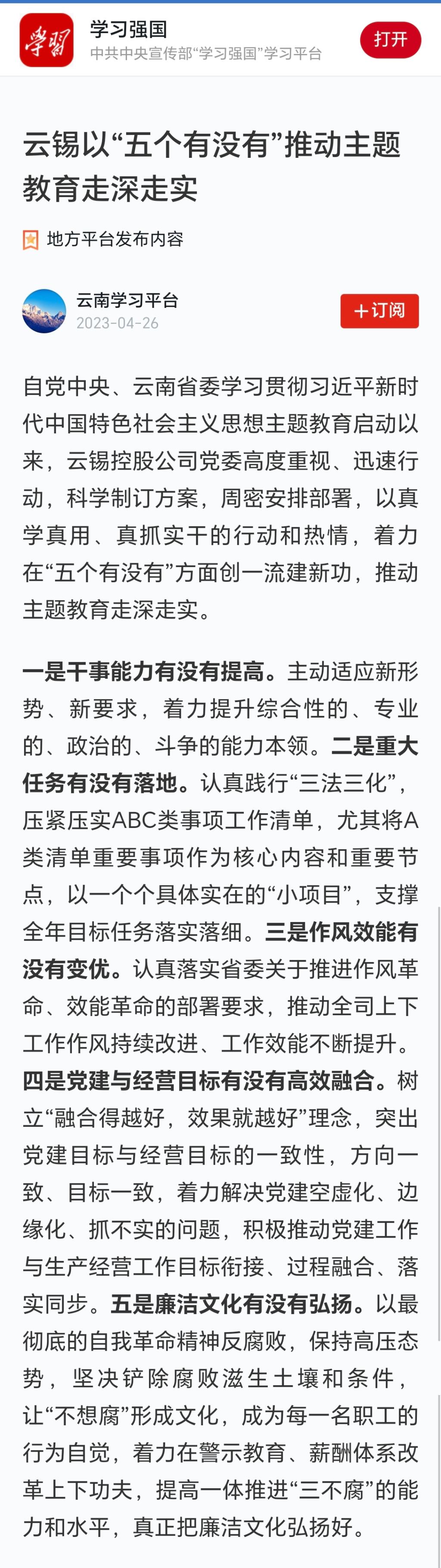 學(xué)習(xí)強(qiáng)國:云錫以“五個(gè)有沒有”推動(dòng)主題教育走深走實(shí)
