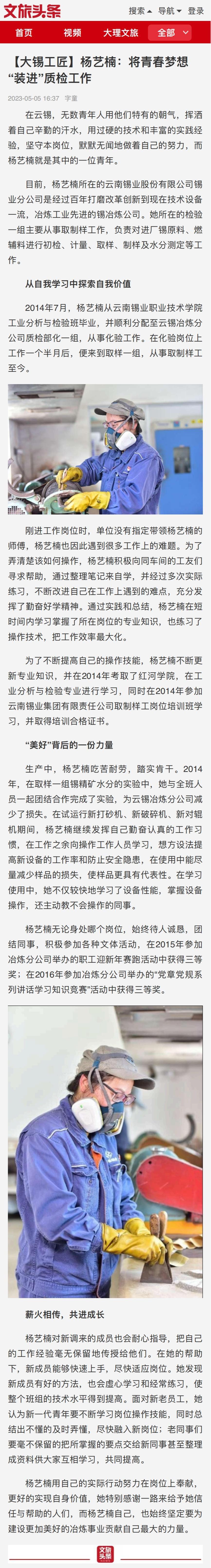 文旅頭條:【大錫工匠】楊藝楠:將青春夢想“裝進”質檢工作