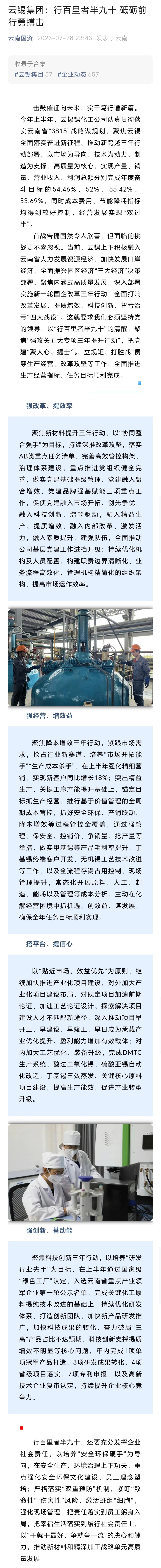 云南國資:云錫集團行百里者半九十 砥礪前行勇搏擊