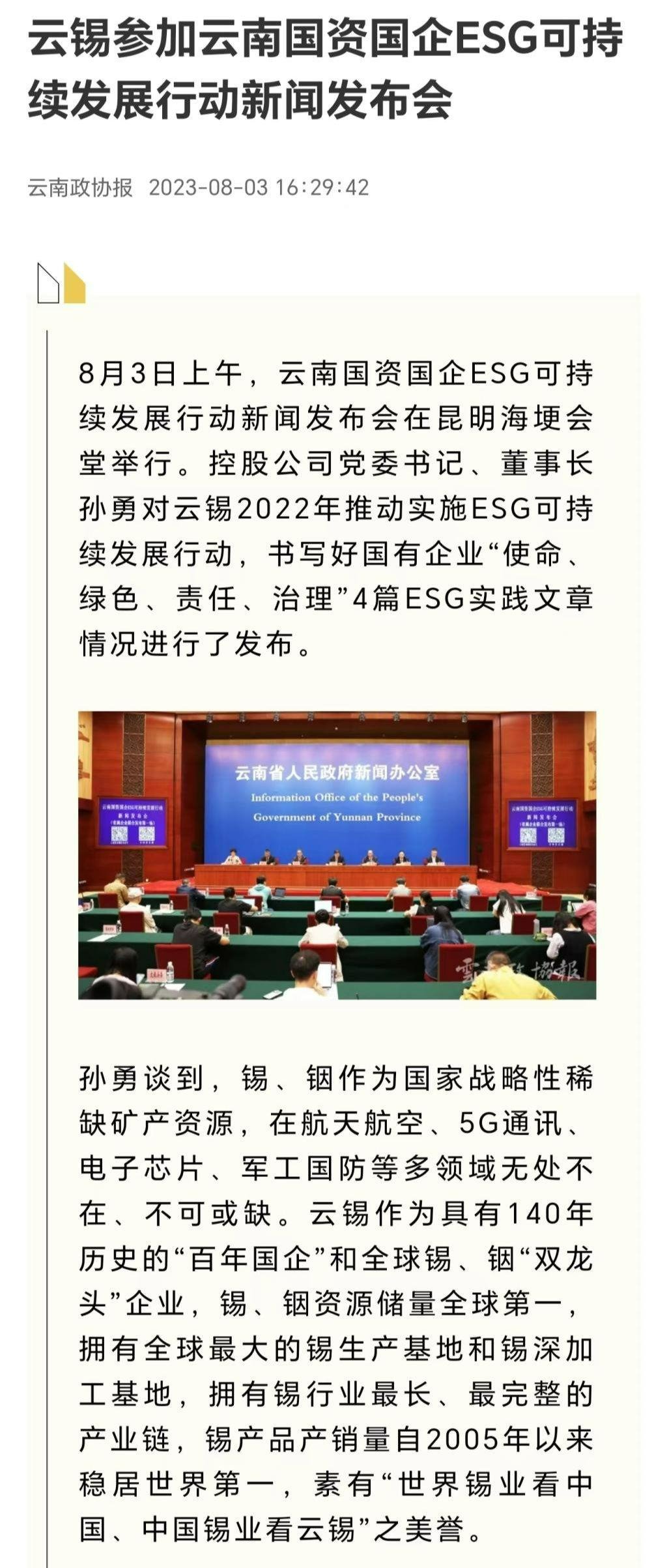 來源:新華社財經、人民網、云南發布、改革網、云南國資、云報客戶端、云南政協報、中國有色金屬報