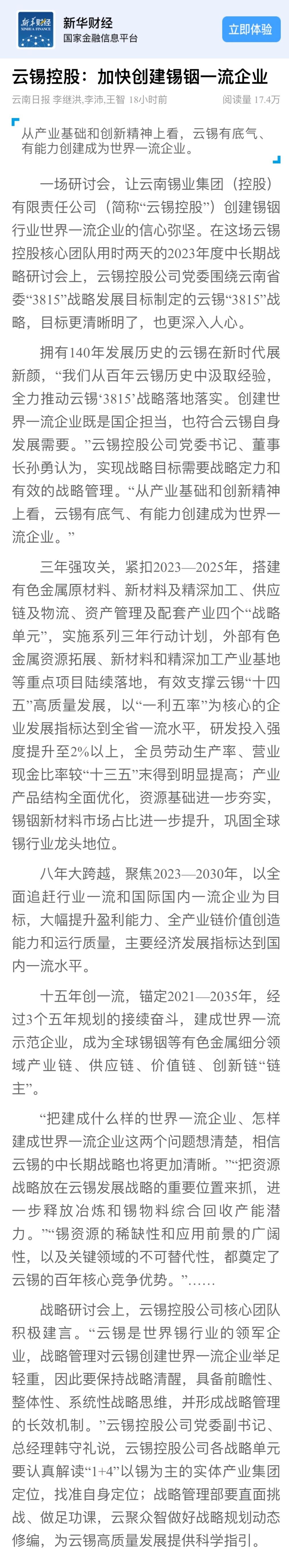 新華財經:云錫控股加快創建錫銦一流企業