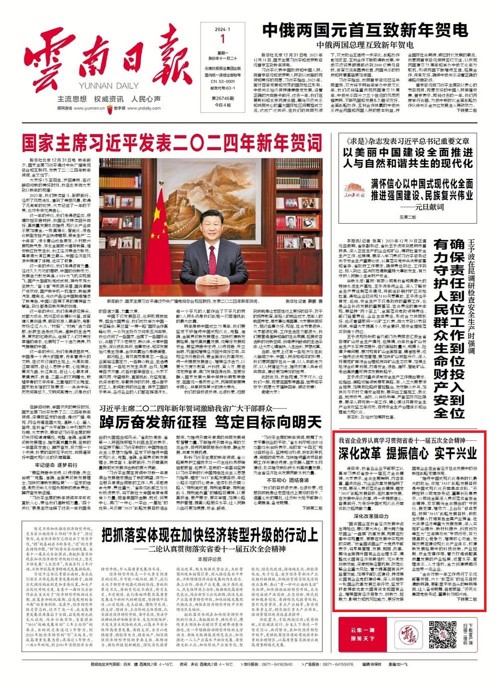 連日來,我省各企業干部職工認真學習貫徹省委十一屆五次全會精神。大家表示,全會主題鮮明、內容豐富、重點突出,為企業改革發展指明了方向,要深入貫徹落實全會精神,錨定“3815”戰略發展目標,在改革中發展,在發展中深化改革,進一步提振信心,奮勇前行,為走好中國式現代化云南實踐之路貢獻力量。