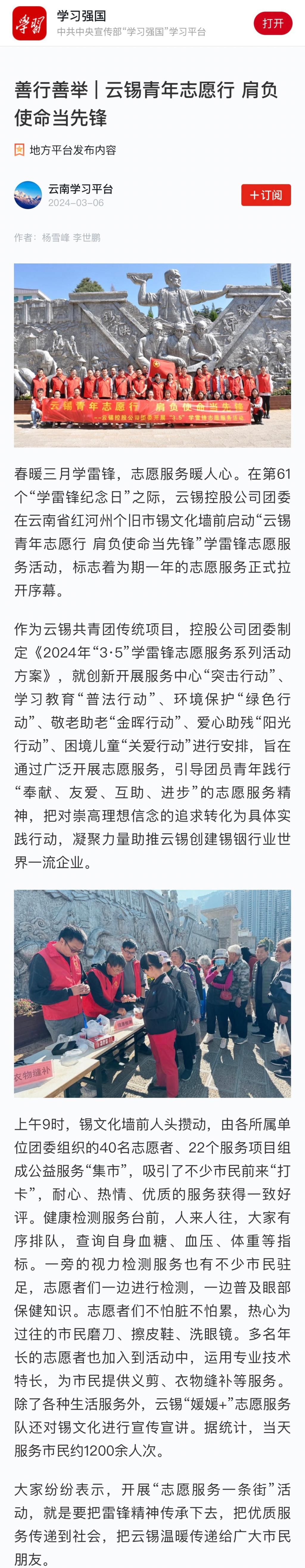 學習強國:【善行善舉】云錫青年志愿行 肩負使命當先鋒