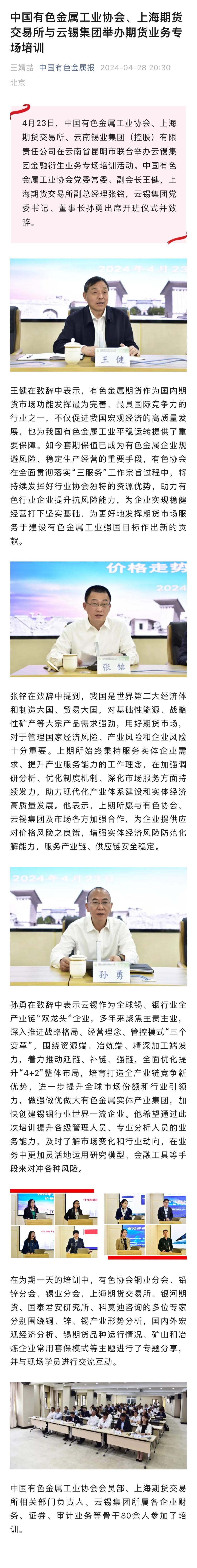 中國有色金屬報:中國有色金屬工業協會、上海期貨交易所與云錫集團舉辦期貨業務專場培訓