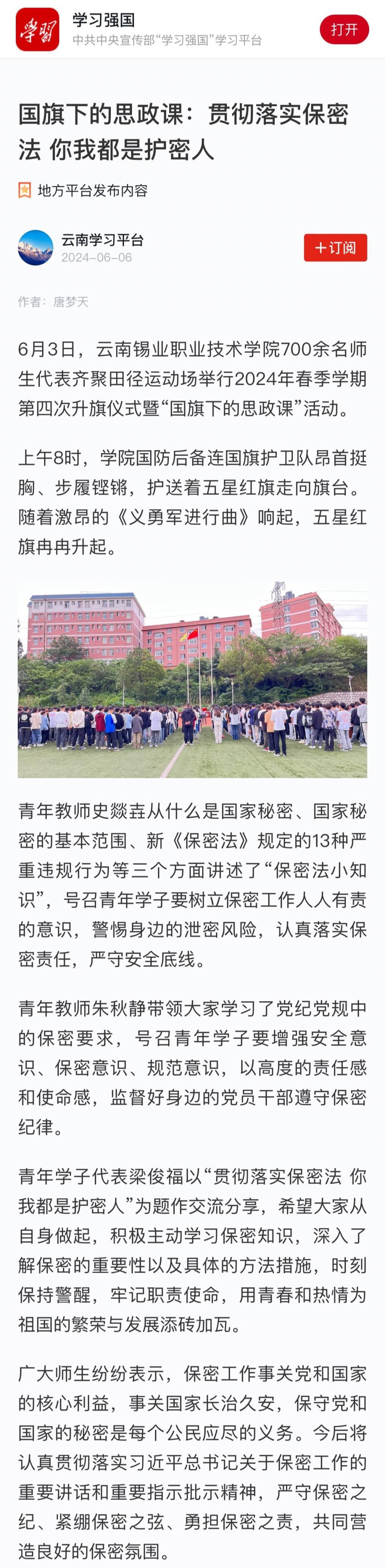 學(xué)習(xí)強(qiáng)國:【國旗下的思政課】貫徹落實(shí)保密法 你我都是護(hù)密人