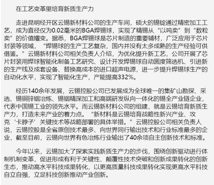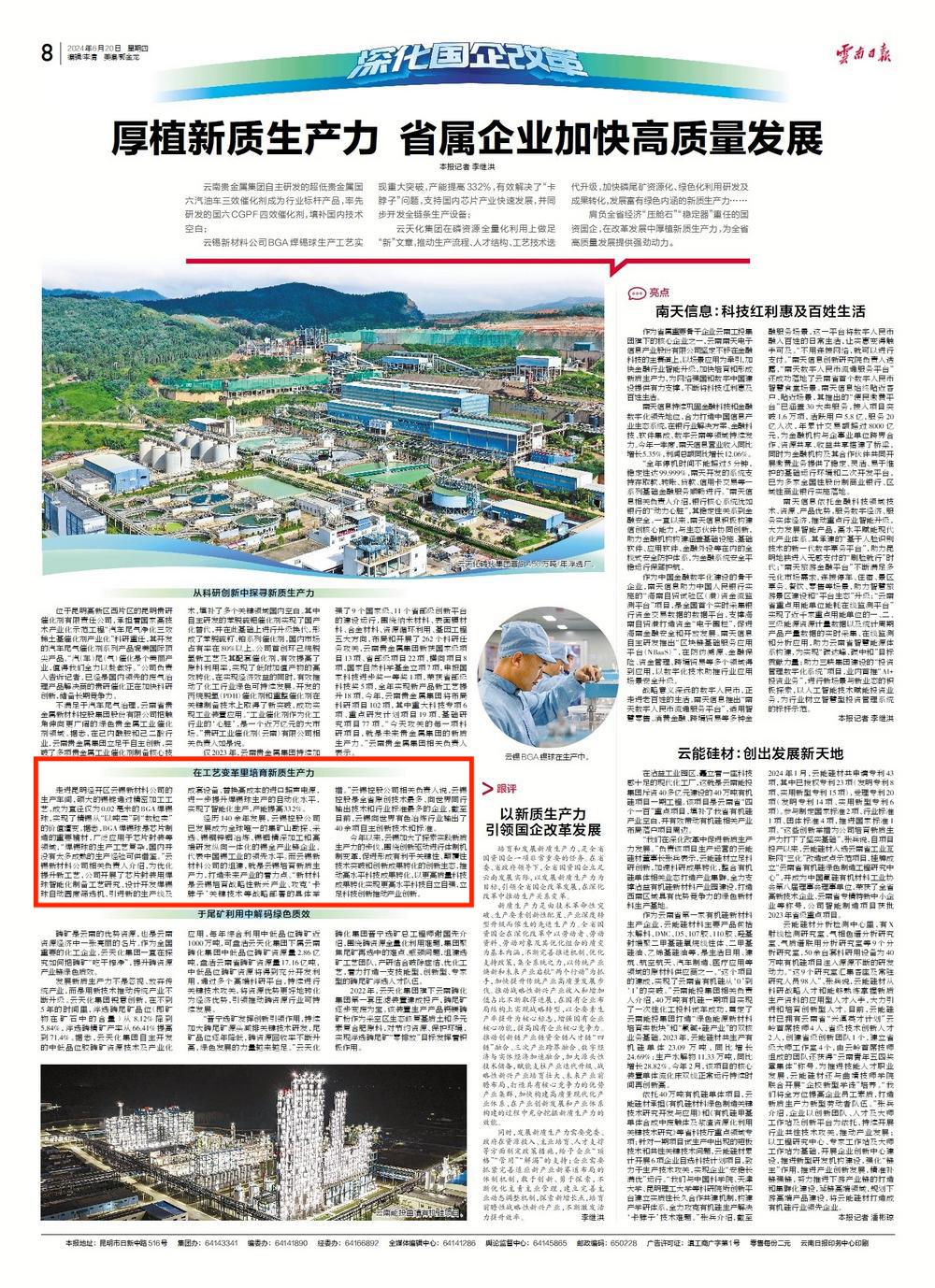 云南日報:厚植新質生產力 省屬企業加快高質量發展