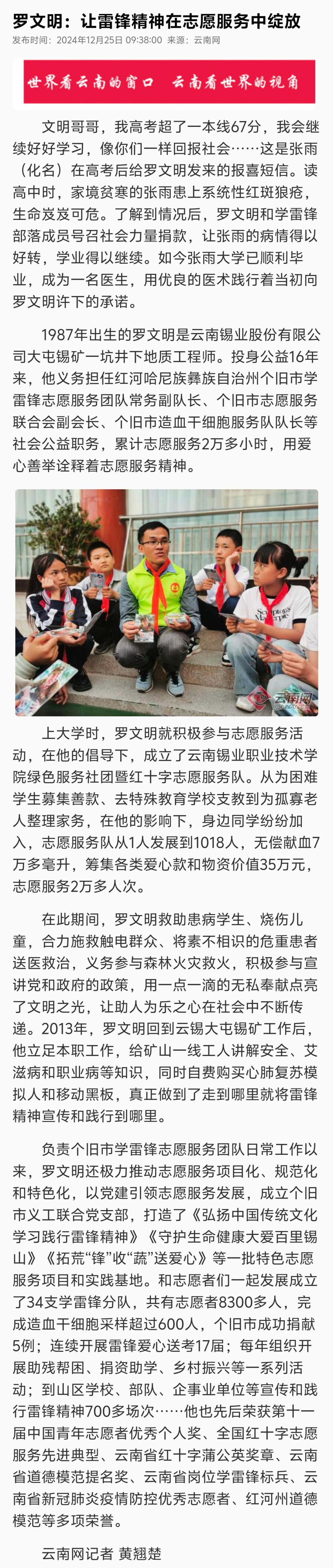 云南網:羅文明讓雷鋒精神在志愿服務中綻放