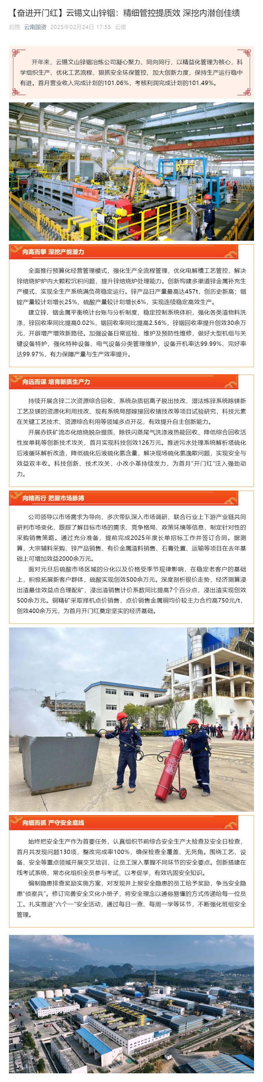 云南國資:文山鋅銦精細管控提質效 深挖內潛創佳績