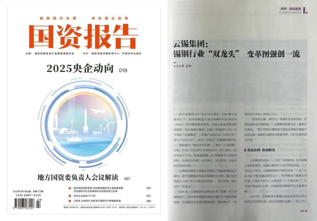 “云錫集團(tuán)有資源、有技術(shù)、有底蘊(yùn)。恰逢近年來人工智能和新能源等領(lǐng)域持續(xù)發(fā)展,市場(chǎng)供需基本面強(qiáng)勁,改革進(jìn)一步激發(fā)了企業(yè)的活力和動(dòng)力。此時(shí)要搶抓機(jī)遇,不斷提升價(jià)值創(chuàng)效能力和行業(yè)引領(lǐng)力。”云錫集團(tuán)所屬錫業(yè)股份董秘楊佳煒對(duì)《國資報(bào)告》記者說。