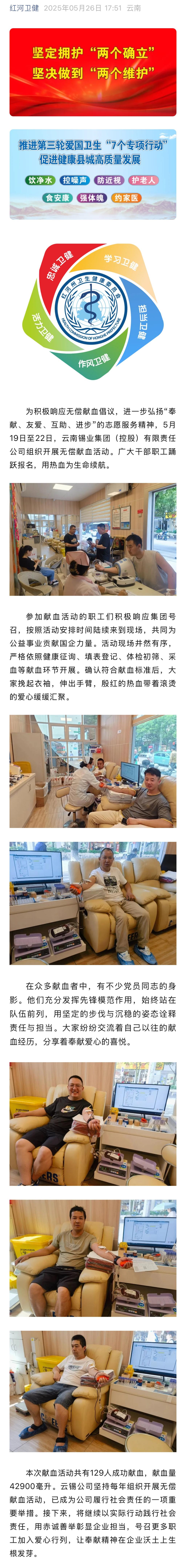 紅河衛健:云南錫業集團(控股)有限責任公司組織開展無償獻血活動