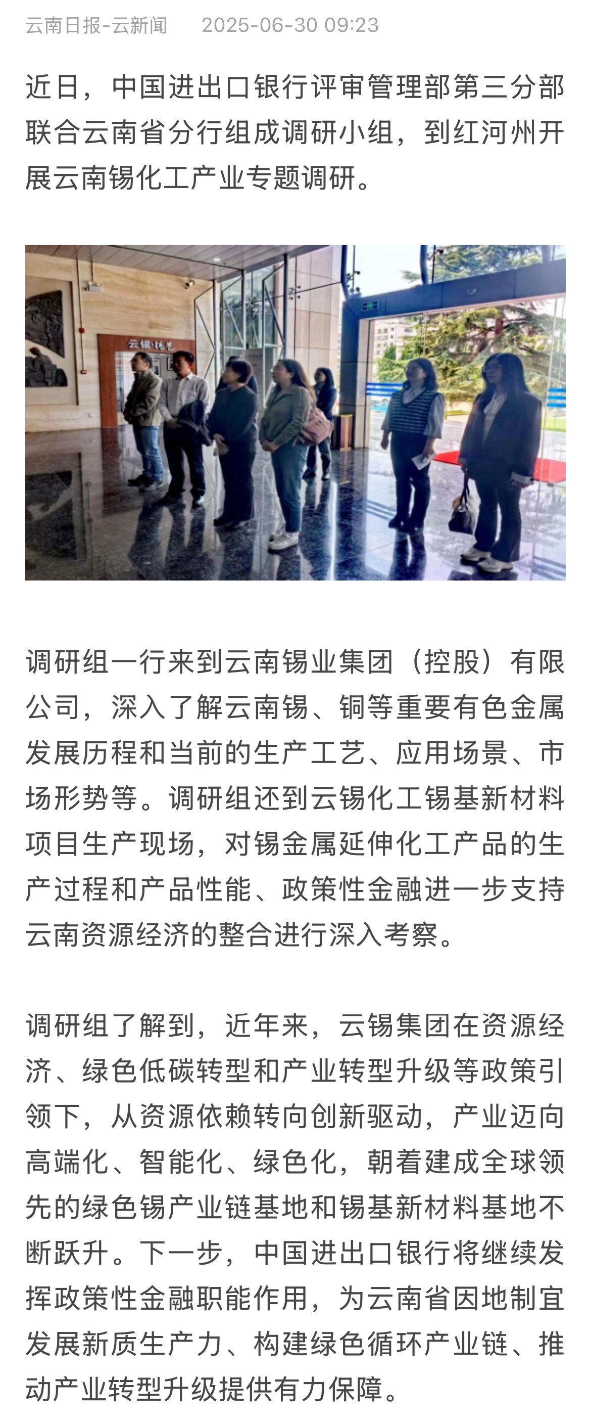 云南日報-云新聞:中國進出口銀行調研云南錫化工產業
