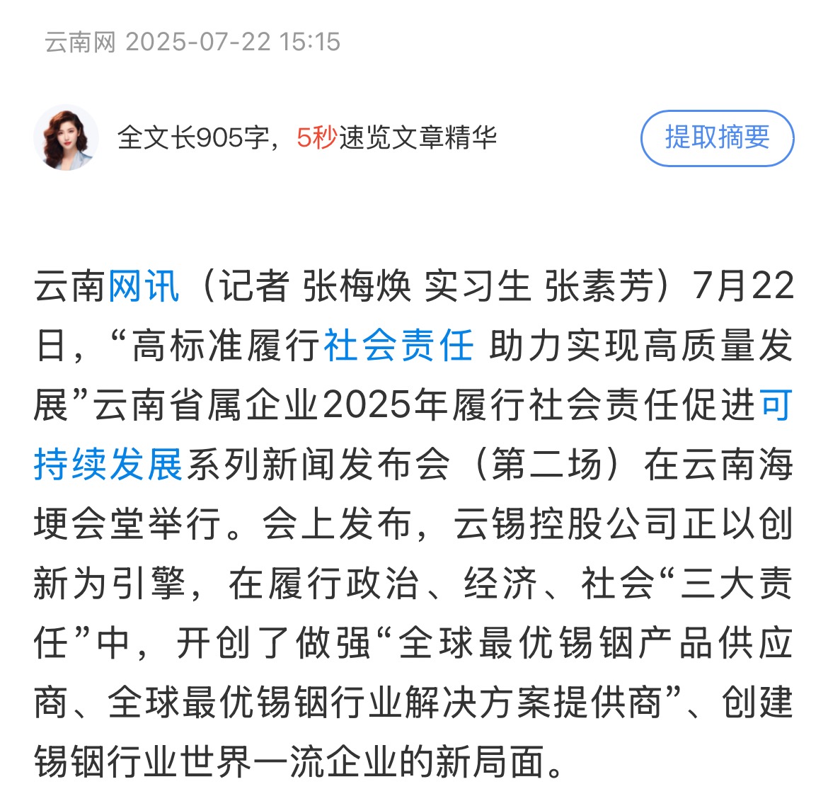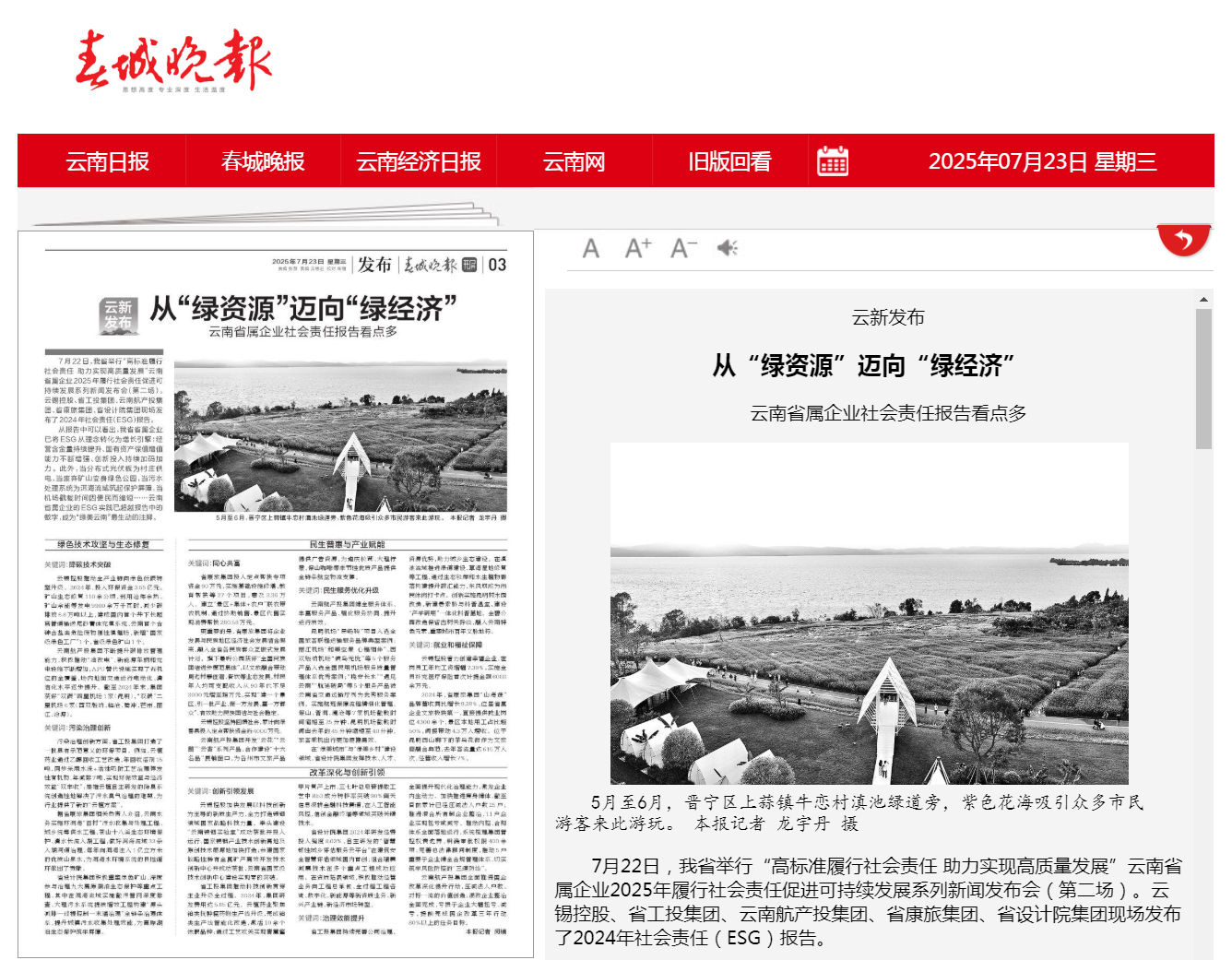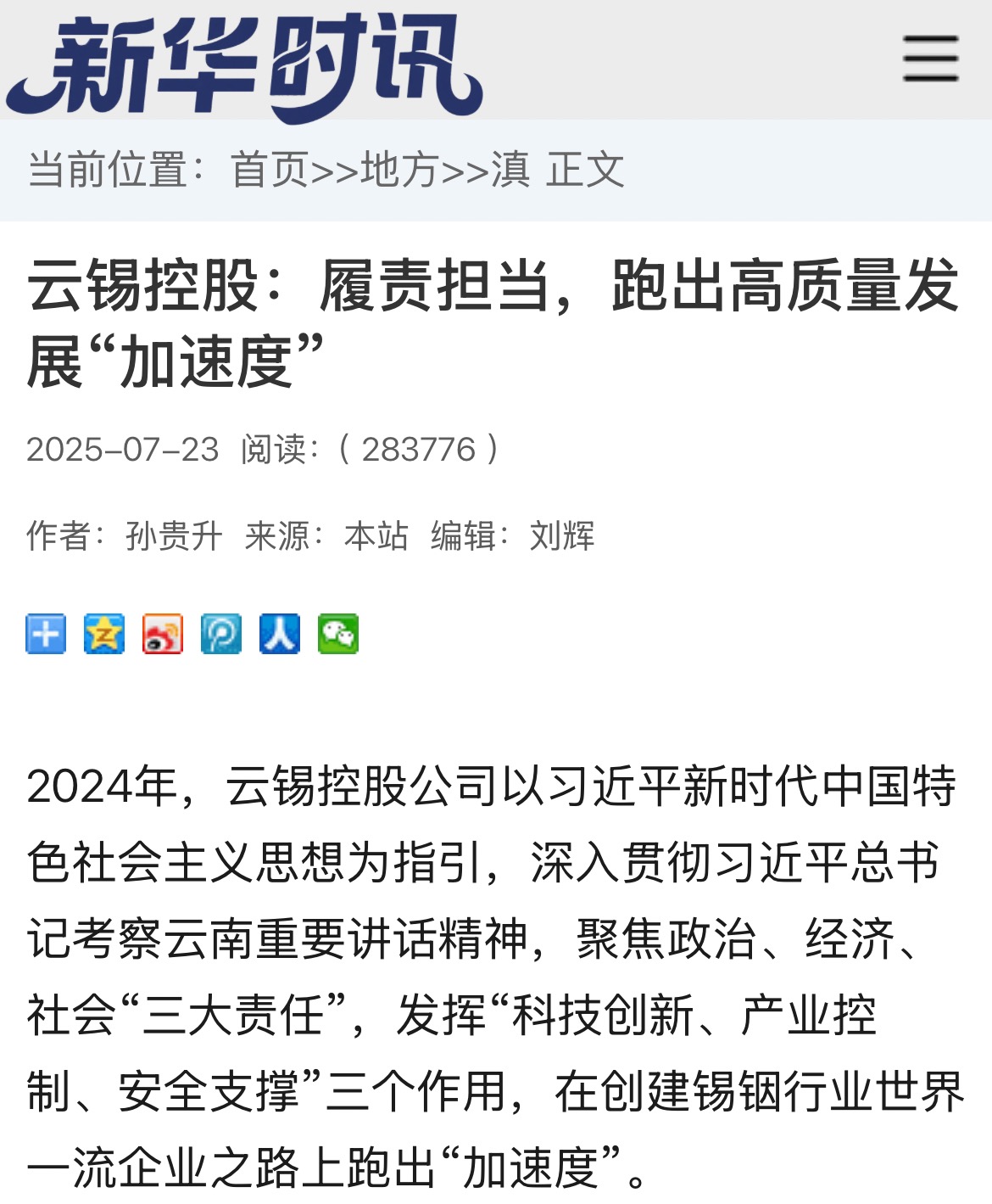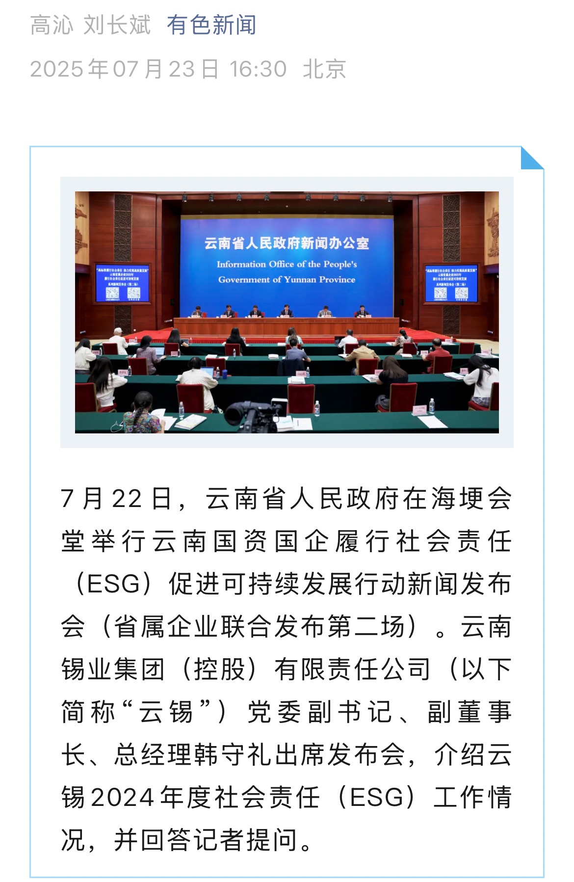 鏈接:(央廣網)、(央視影音)、(新華網)、(新華時訊)、(中國日報網)、(中國新聞網)、(中國網)(云南新聞聯播)、(云南衛視晚間新聞)、(云南發布)、(云南日報)、(云南日報-云新聞)、(云南網)、(七彩云端)、(云南省人民政府)、(云嶺先鋒網)、(云南國資)、(云南政協報)、(有色金屬報)、(有色新聞)、(騰訊新聞)、(今日頭條)、(搜狐)、(網易)、(新浪微博)、(新浪財經)、(都市時報)、(國泰君安)、(昆明日報)、(春城晚報)、(昆明信息港)、(開屏新聞)