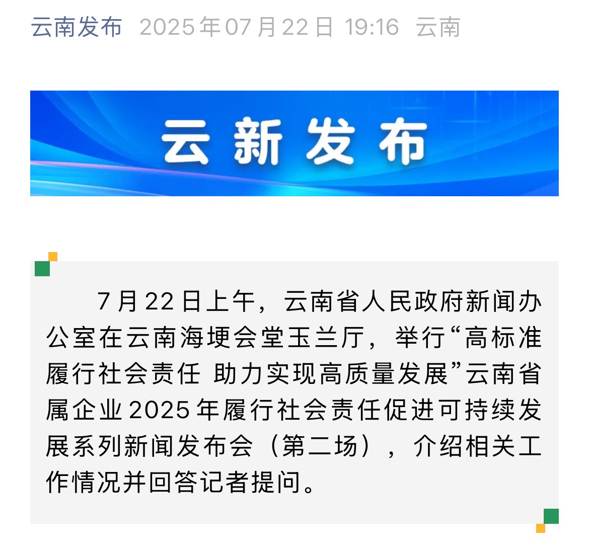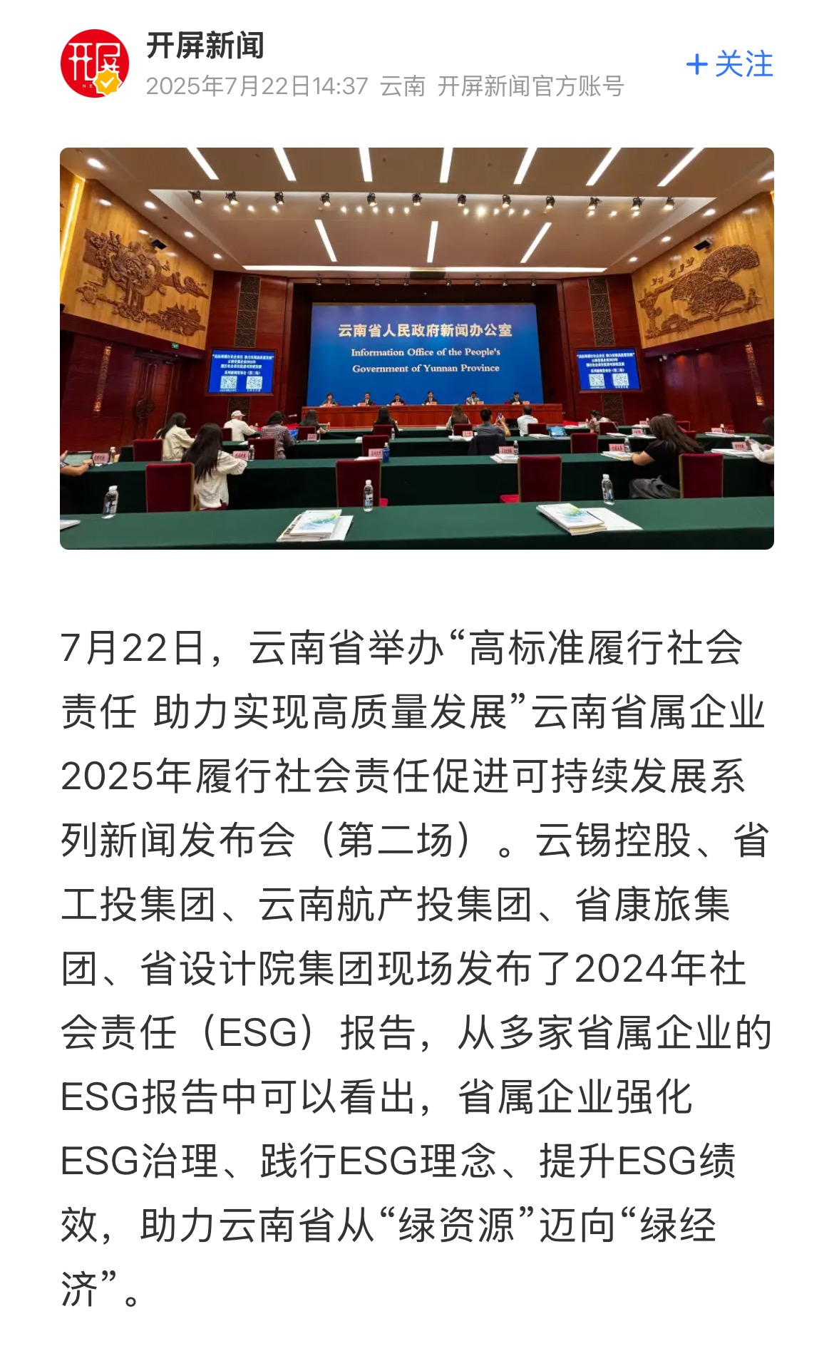 來源:央廣網、央視影音、新華網、新華時訊、中國日報網、中國新聞網、中國網云南新聞聯播、云南衛視晚間新聞、云南發布、云南日報、云南日報-云新聞、云南網、七彩云端、云南省人民政府、云嶺先鋒網、云南國資、云南政協報、有色金屬報、有色新聞、騰訊新聞、今日頭條、搜狐、網易、新浪微博、新浪財經、都市時報、國泰君安、昆明日報、春城晚報、昆明信息港、開屏新聞