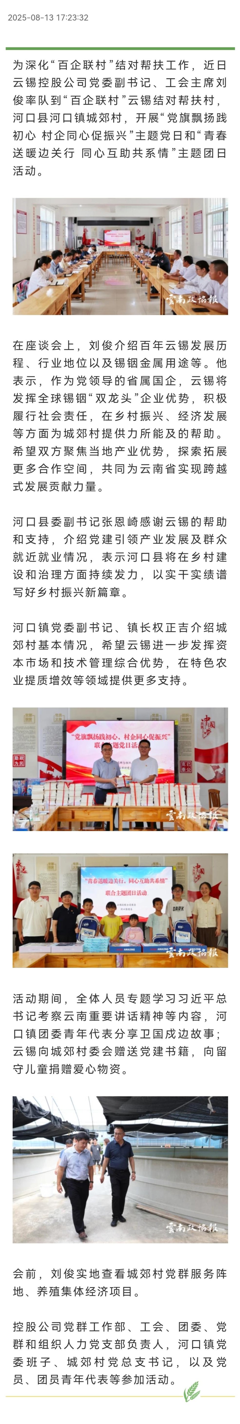 云南政協報:云錫赴河口縣開展“百企聯村”黨團共建活動