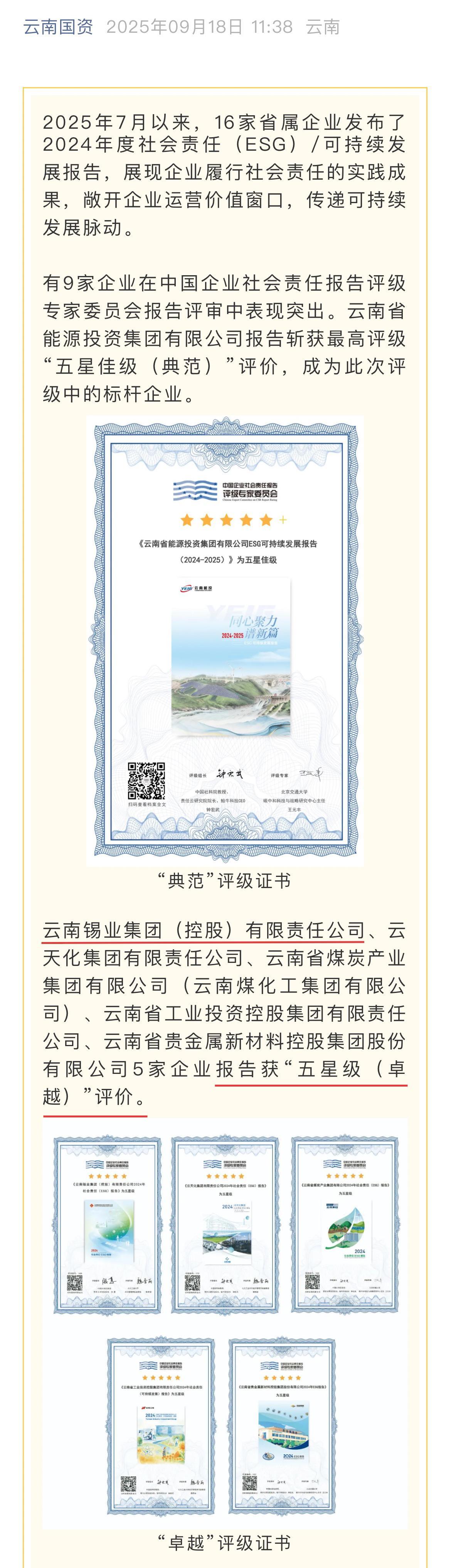 云南國資:省屬企業社會責任報告評級表現突出