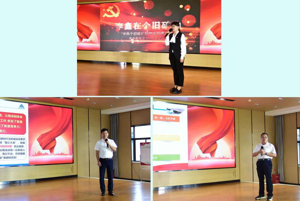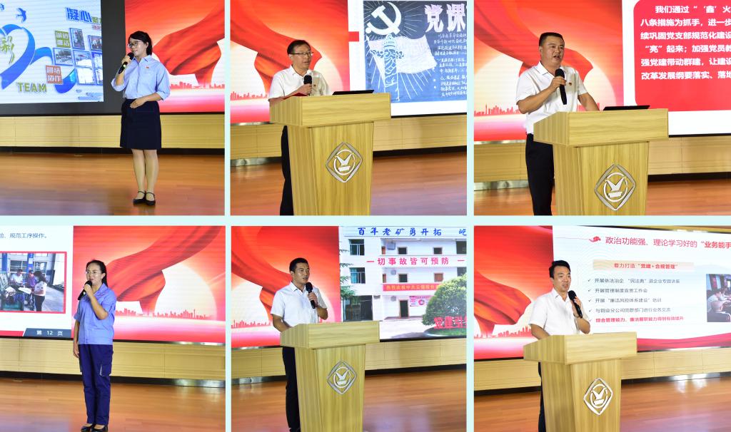 “夯實(shí)“3+3+3”黨建融入措施,實(shí)現(xiàn)了黨建與中心工作深度融合。”“啟動(dòng)‘1335’黨建工作,讓鮮紅的黨旗在祖國(guó)西南邊陲古鎮(zhèn)的大山深處高高飄揚(yáng)。”“我們傳承革命薪火,賡續(xù)紅色血脈,續(xù)寫(xiě)‘前世今生’的緣分。”大屯錫礦選礦車(chē)間黨總支,華聯(lián)鋅銦新田選礦車(chē)間黨支部和機(jī)械(錫都實(shí)業(yè))公司安化五八一黨支部滿(mǎn)載“妙招”進(jìn)行思想碰撞,臺(tái)下觀眾時(shí)而凝神靜聽(tīng),時(shí)而拍手叫絕,時(shí)而應(yīng)聲喝彩。