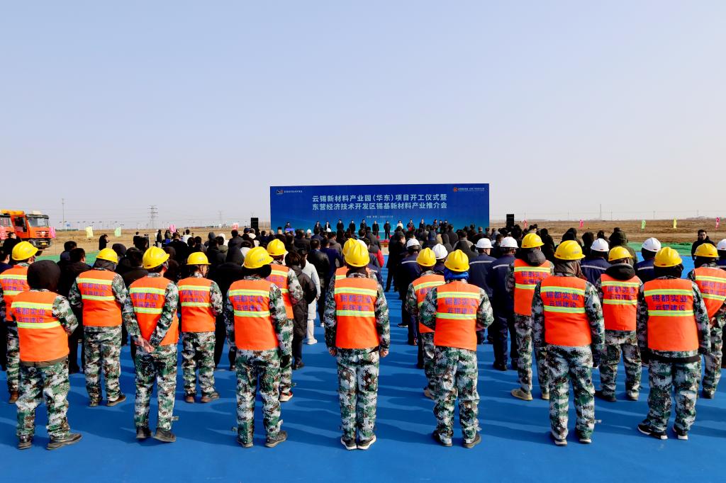 控股公司黨委書記、董事長孫勇,副總經理李季,黨委委員、財務總監胥翠芬,東營經濟技術開發區黨工委書記、管委會主任康茂禮,東營市科學技術局黨組書記、局長張曉慧等相關領導出席開工儀式,共同為云錫新材料產業園(華東)項目開工奠基。
