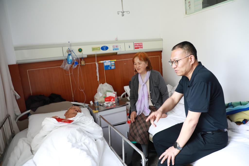 控股公司黨委副書記、工會主席劉俊走訪慰問物流公司困難黨員李正福(楊雪峰/攝)