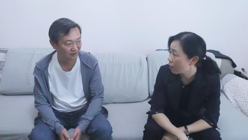 控股公司紀委書記、監察專員蘭菊走訪慰問職業學院困難黨員沈朝瑋(唐夢天/攝)
