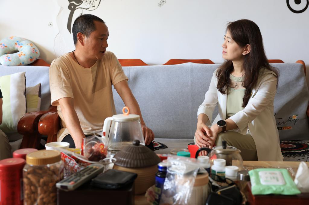 控股公司紀委書記、監察專員蘭菊走訪慰問老黨員榮天順(唐夢天/攝)