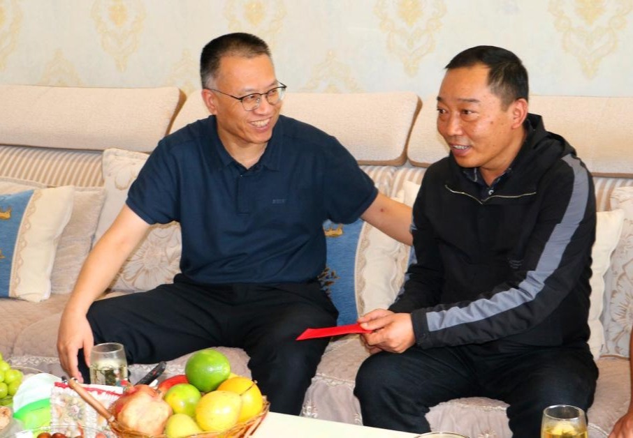 控股公司黨委委員、副總經理宋興誠走訪慰問錫都實業全國先進生產者佟福科(徐純/攝)