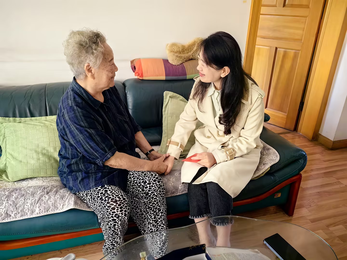 控股公司黨委委員、財務總監胥翠芬走訪慰問退休困難人員黃喬有(程雪銳/攝)