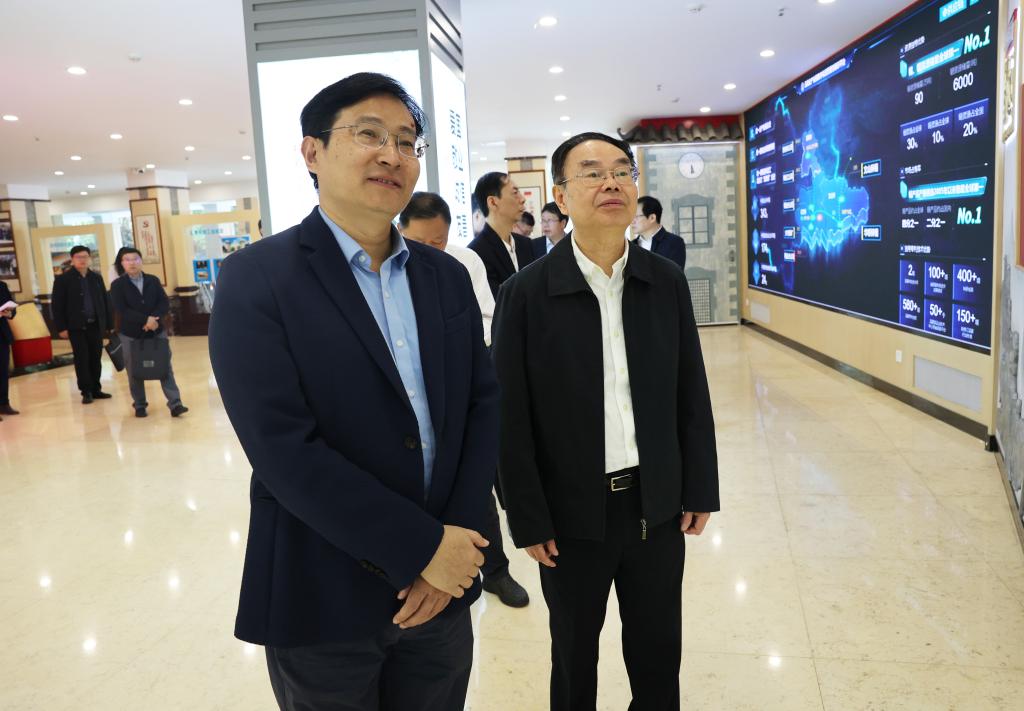 在一樓展廳,陳全訓觀看云錫形象片,領略從一類到多類,以錫構建多元應用實踐的價值創造能力。通過全產業鏈數字化運營管控展示系統,重點了解云錫精深加工產業發展情況,對錫產品從“以噸計價”到“以克計價”的深刻變革給予充分肯定。