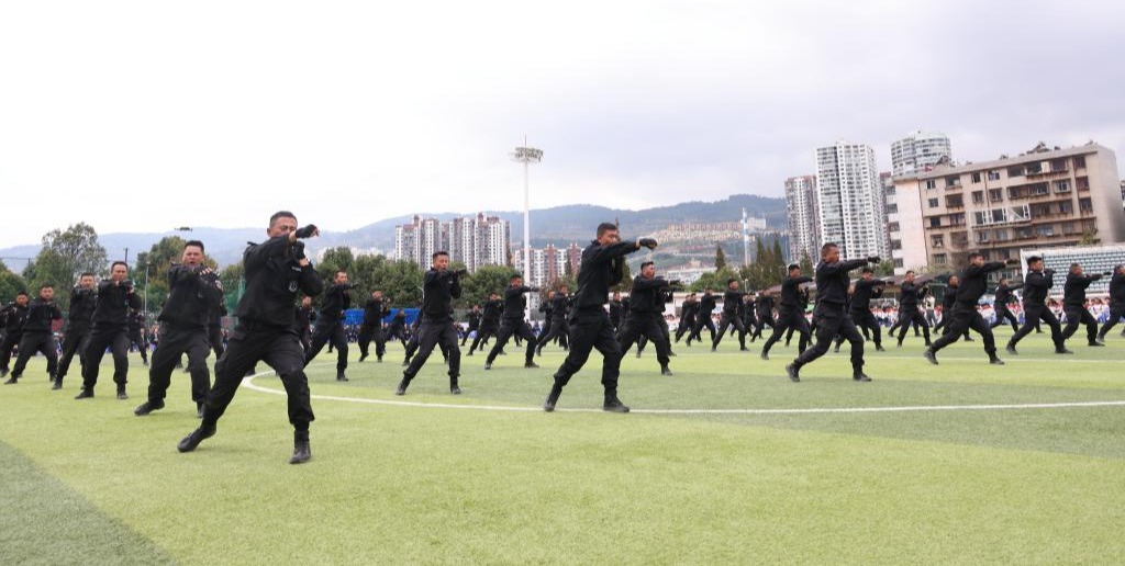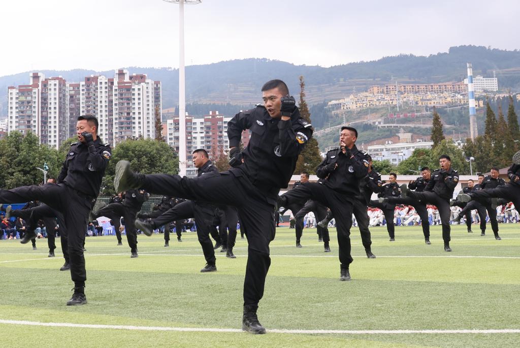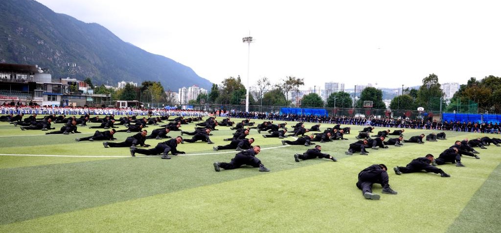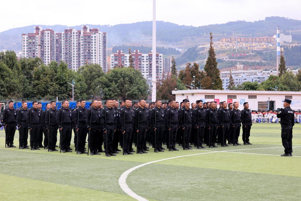 10月23日,隨著鏗鏘的一聲報告,2024年云錫綜治隊伍軍事技能匯報表演在個舊市體育場拉開帷幕。