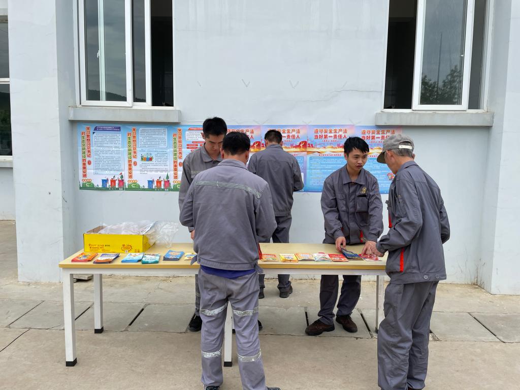 大屯錫礦向職工群眾分發印有安全環保和職衛現行法律法規、新《安全生產法》十大亮點、安全文化理念、安全生產十五條措施等宣傳資料,解答職工群眾關心的各類安全生產問題和相關的法律法規,提升安全生產意識。