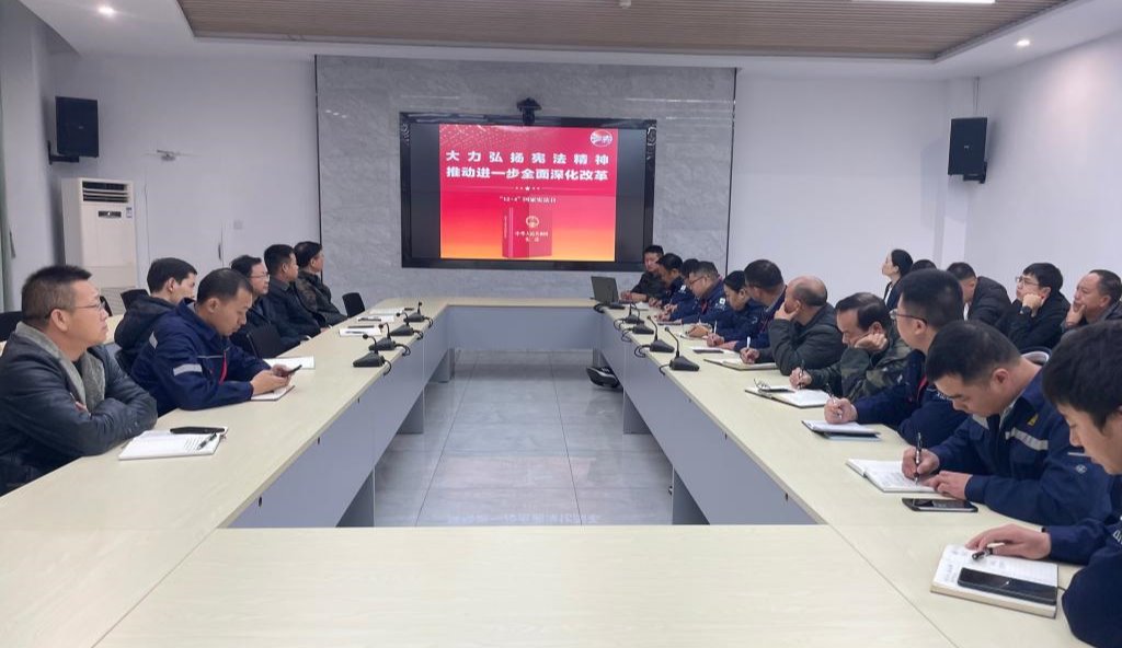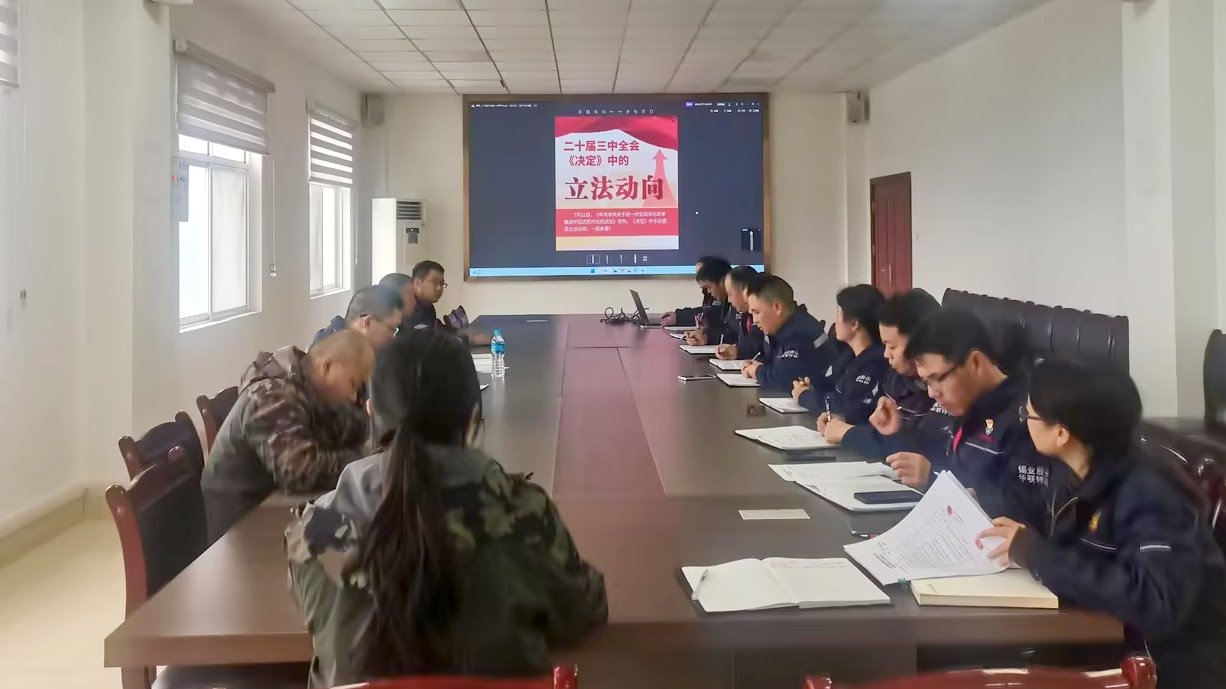 文山鋅銦冶煉公司組織學習黨的二十屆三中全會精神、習近平法治思想以及憲法、國旗法、國歌法、國徽法等內容,推動憲法精神融入日常。用好電子橫幅、宣傳大屏、宣傳欄、微信工作群等宣傳陣地,營造濃厚的法治宣傳氛圍。(鄭新華)