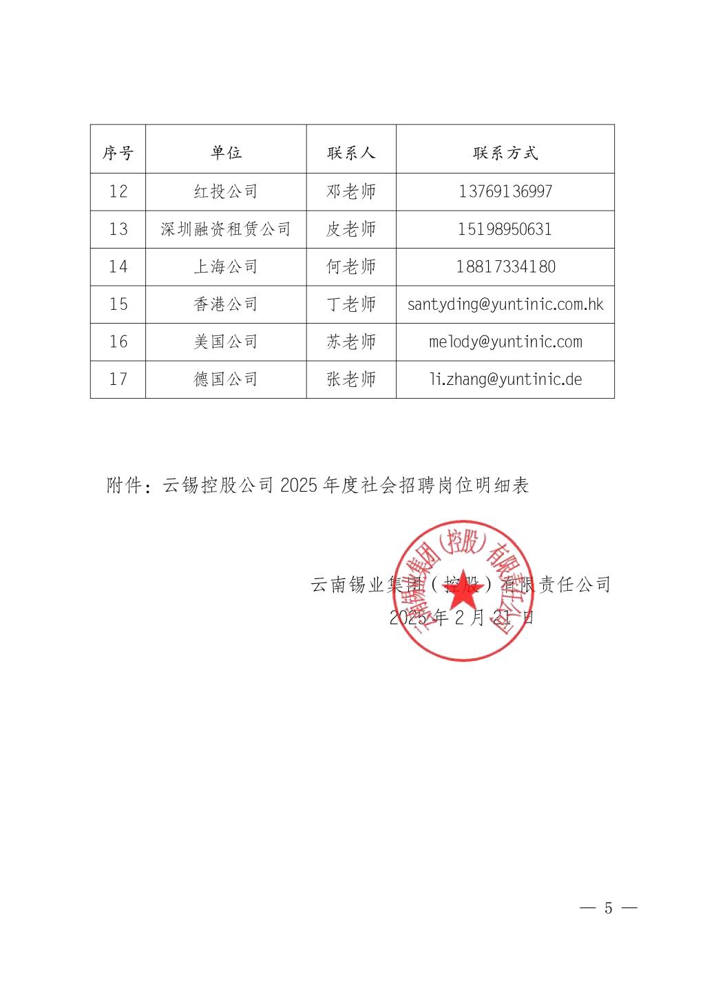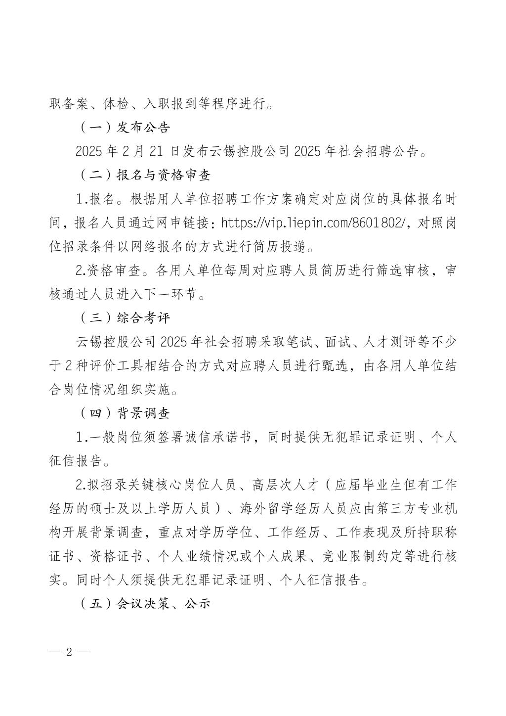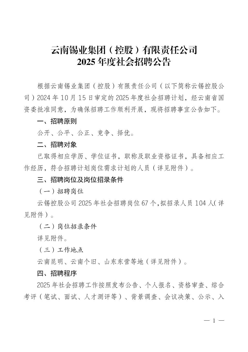 云南錫業(yè)集團(tuán)(控股)有限責(zé)任公司2025年度社會(huì)招聘公告